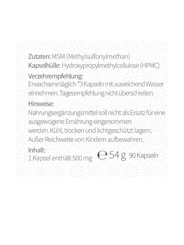 | MSM (Methylsulfonylmethan) | 1.500 mg | *** |