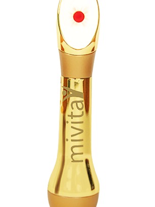 3. Tragen Sie nun die MIVITA Naturkosmetik auf das Gerät auf und massieren Sie es lt. Abbildung ein. Das Gesichtsmassagegerät timeless beginnt bei Hautkontakt.
